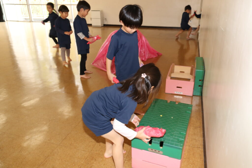 先生たちが秘密にしていたゲーム、さつまいも探しもしました!みんな見つけられるかな?と先生たちがうまく隠したのですが…すぐに見つかってしまいました💦2回目は桜組とパンダ組が3回目は梅組のお友だちが隠すチャレンジ!見つけに行くお友だちがワクワクしていました。どちらも出来て面白かったですね♪