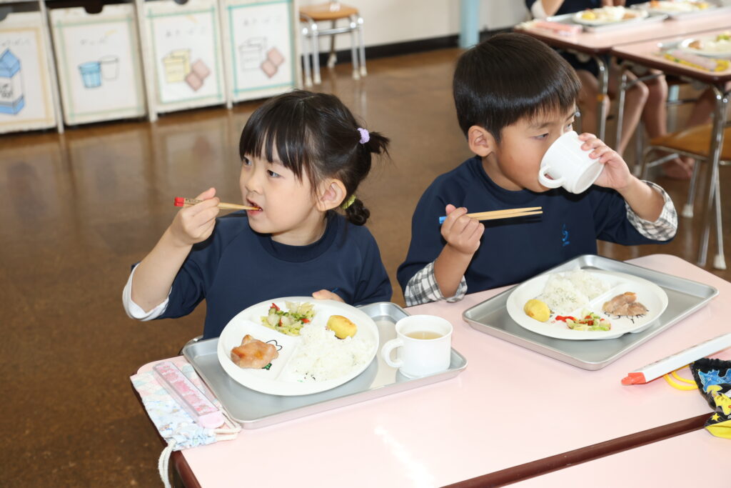 今日の給食は、自分達が掘ったさつまいもを使ったメニューでしたよ🍠「みんなが掘った芋入ってるかな」「あまくておいしいね」と嬉しそうに話す姿もありました💕