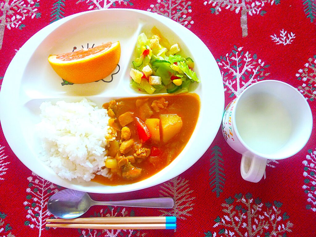 12/17🍛チキンカレー・ミルク・カラフルサラダ・ルビーグレープフルーツ🍛