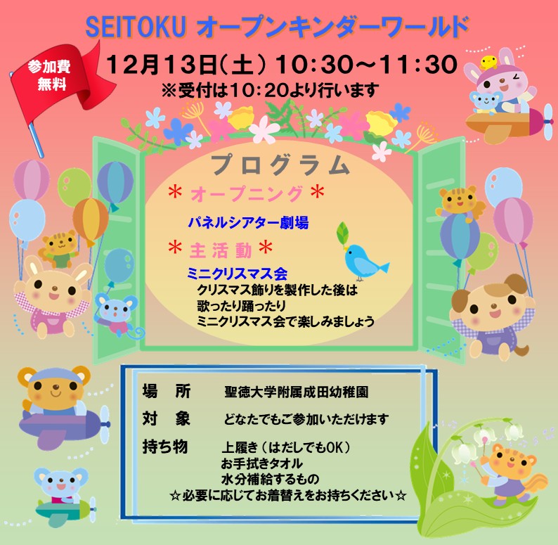 12/13☆SEITOKUオープンキンダーワールドのご案内