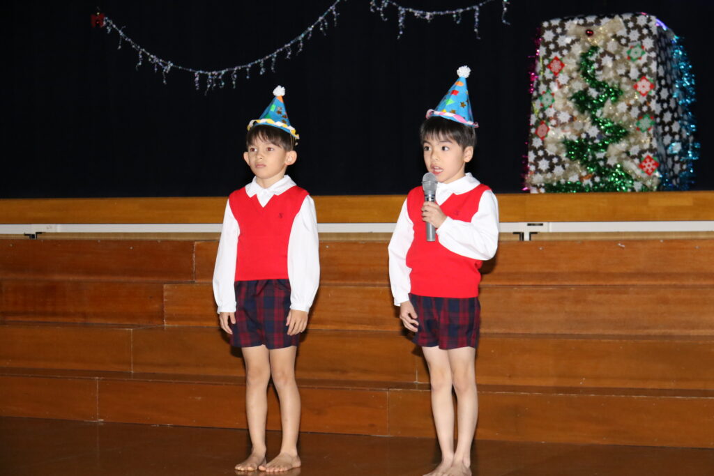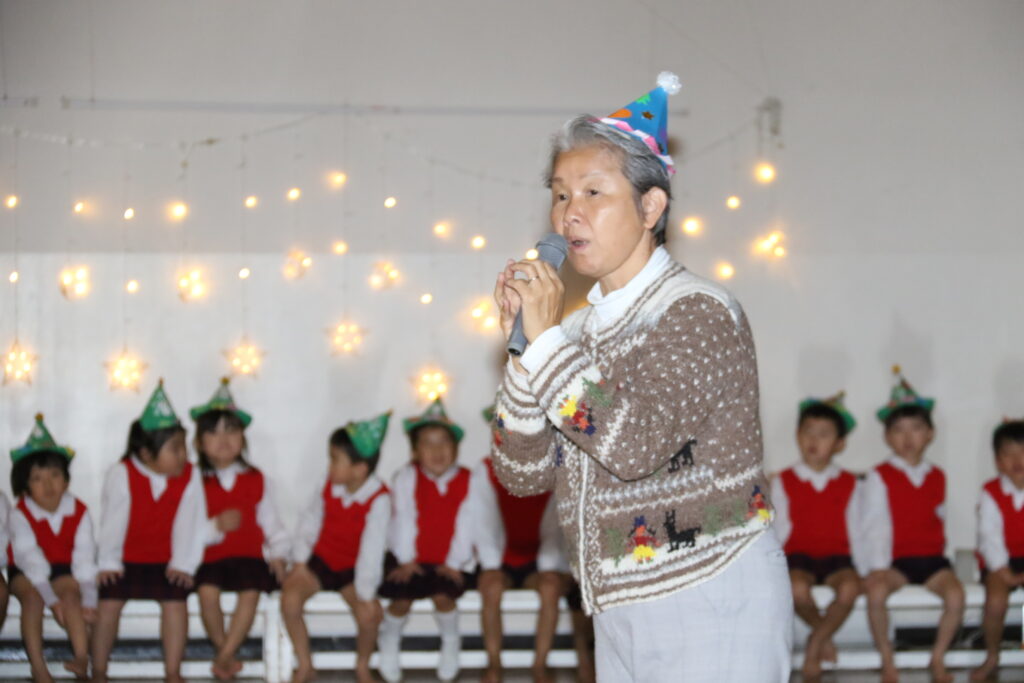 5歳児松組のお友だちのはじめのことばを聞いてクリスマス会が始まりました🎄園長先生のお話を聞いているとどこからか素敵な音楽が聞こえてきて、天使様がクリスマスの灯りをもってきてくださいました!遊戯室の真ん中にある星にも光をともしてくれましたね🌟誓いの言葉も天使様に届きますように・・・