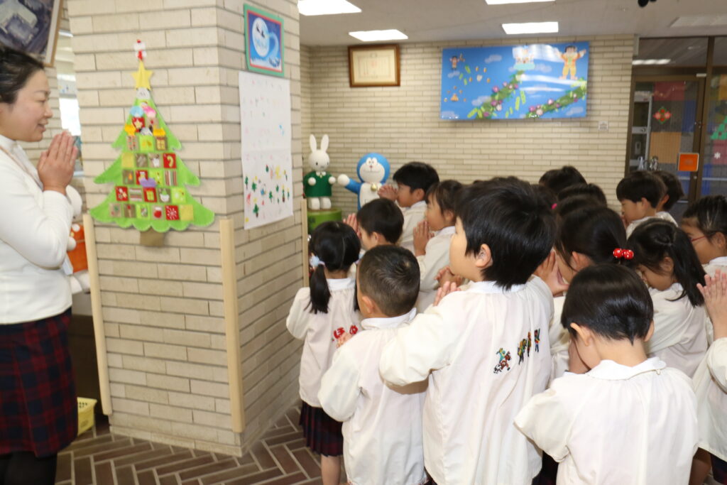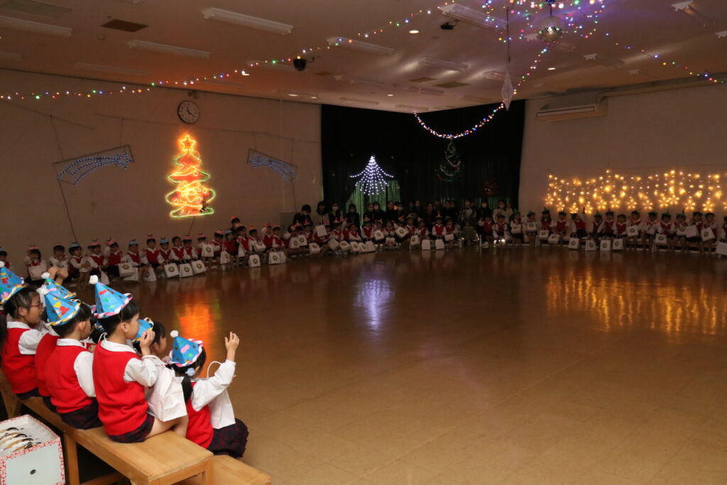 朝から幼稚園の中は、「今日サンタさん来るんだよね!」「サンタさんどこから来るかな?」「プレゼントもらえるかな!」とサンタさんやプレゼントの話が飛び交っています🌟