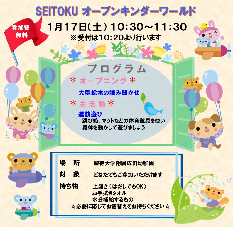 1/17☆SEITOKUオープンキンダーワールドのご案内