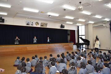 先生方の劇を見ながら「あってる!」「ちがーう!!」と良いか悪いかを考えて答えていましたよ💕