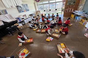 ピアノに合わせてお辞儀をして終業式が始まり、『幼稚園園歌』を歌いました🎵