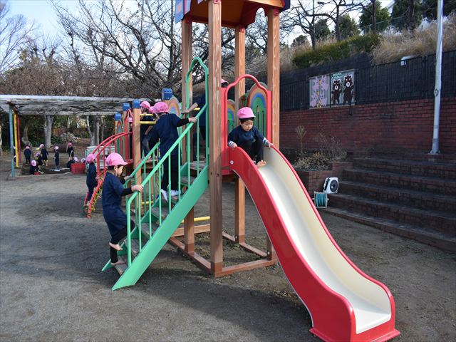 聖徳幼稚園の園庭は、とても広くのびのびあそぶことができます💓
