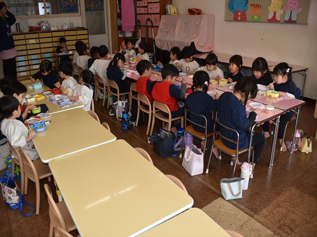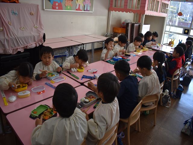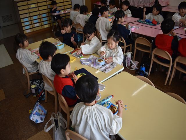 遊んだ後は、手洗い・うがいをして、お家の方に作っていただいたお弁当をいただきました🥢🍱