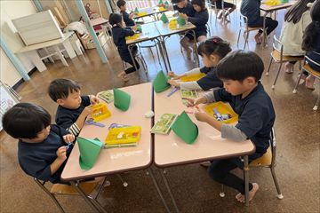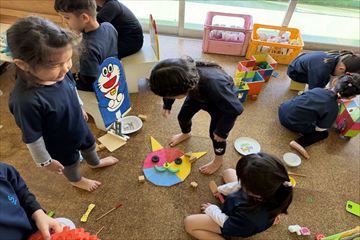 製作や描画あそびをしたり、ブロック、積み木など様々な玩具を使って遊んでいます。