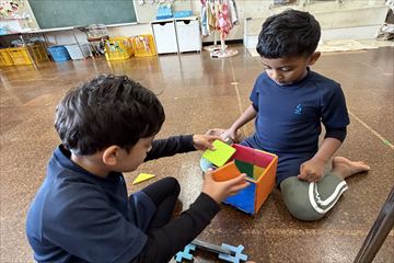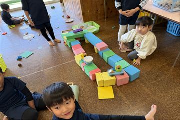 玩具の特性に気づいたり、形を組み合わせることで違う形になることに気づき、友だちとうれしさや達成感を共有しながら楽しく遊んでいます。友だちとのかかわりが深まっているようです🌈