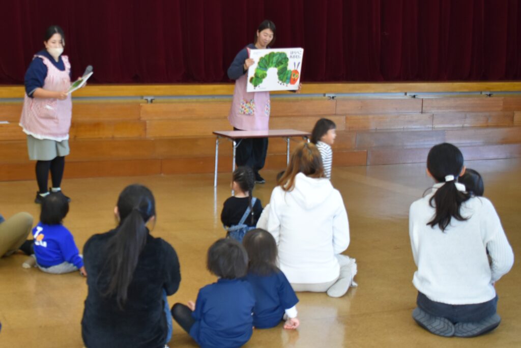 大型絵本「はらぺこあおむし」をみんなで 見ましたね♪