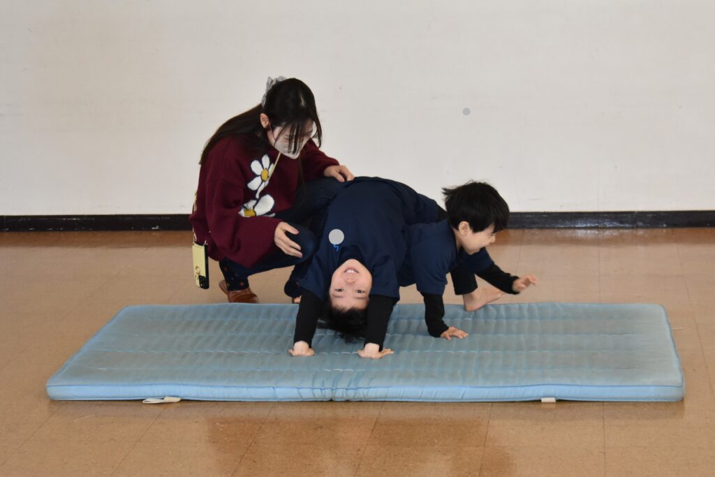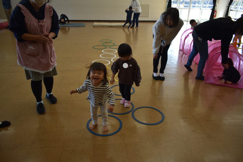 おうちの方と一緒にジャンプしたり、バランスを取ったりして、元気いっぱい遊ぶことができましたね!