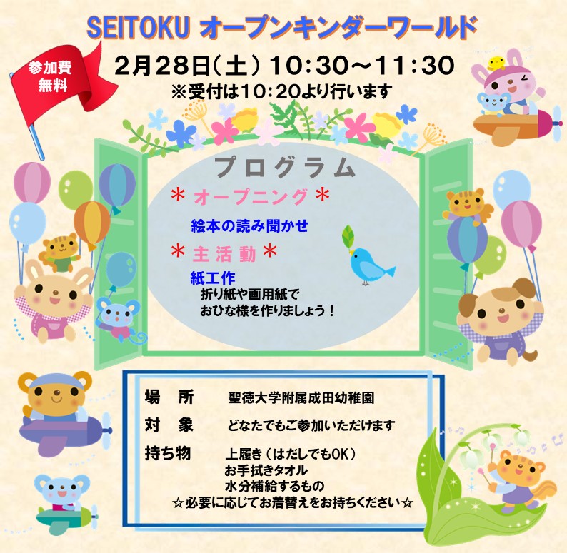2/28☆SEITOKUオープンキンダーワールドのご案内