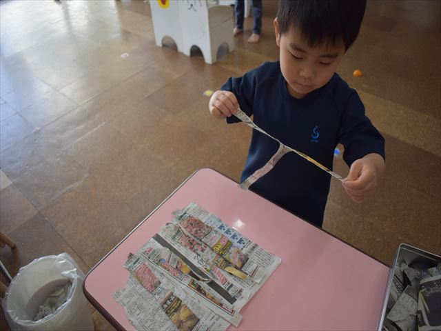 新聞紙を破ったり、切ったり、折ったりして、動物の洋服や靴、帽子、手袋などを作りました🌟