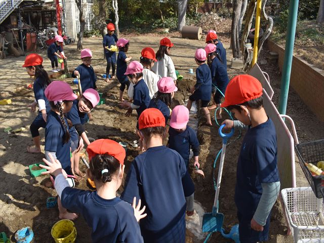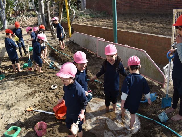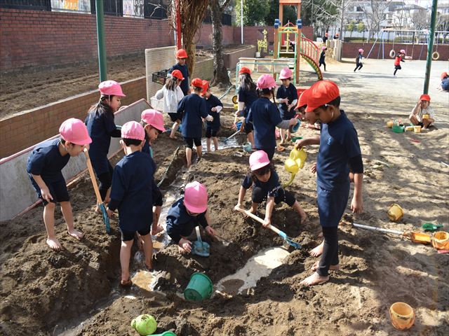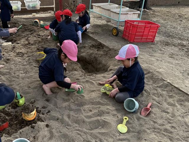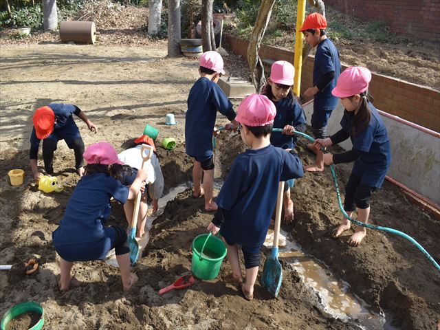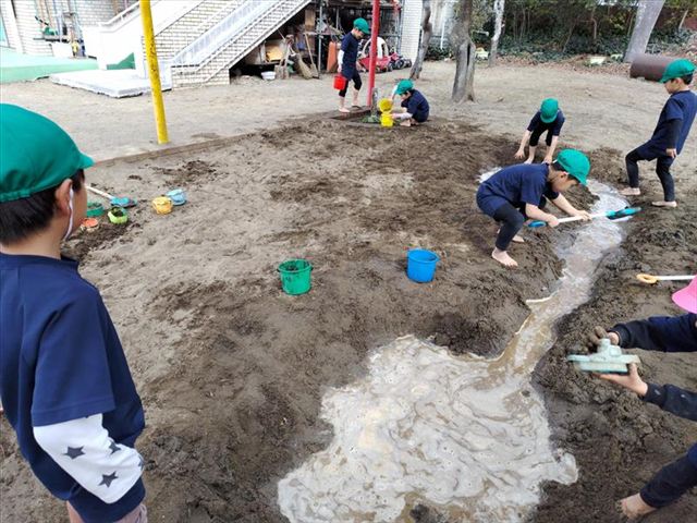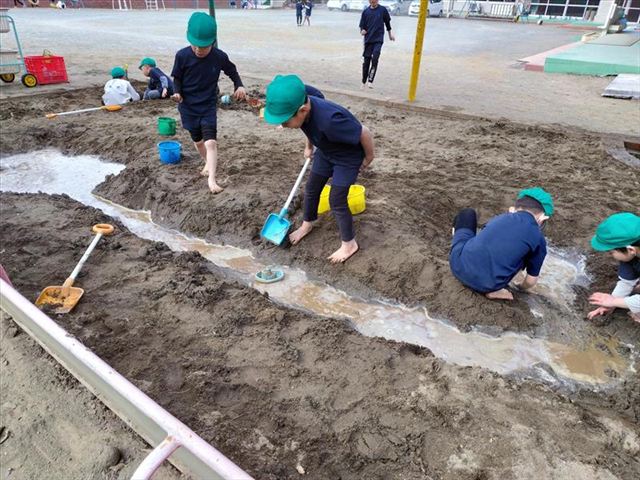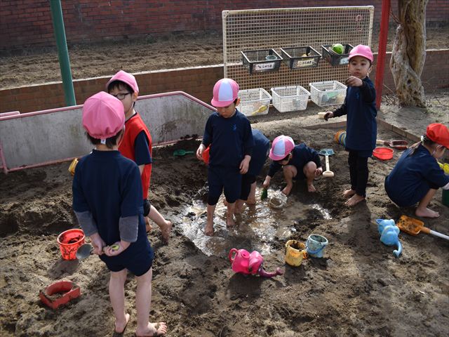 穴を掘ったり、水を流したり、ケーキやお弁当を作ったり・・・