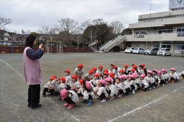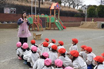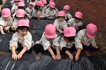 2月24日(火)、3歳児年少組(桜組)と4歳児年中組(梅組)の園児でじゃがいもの種いも植えをしました。