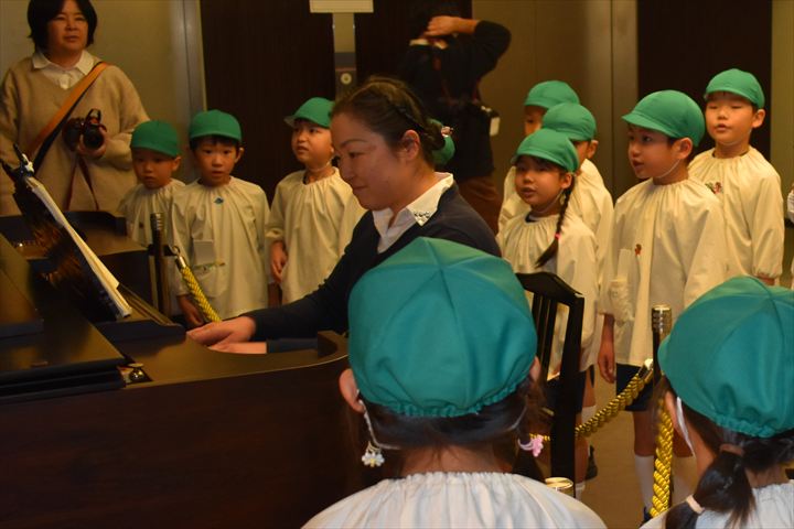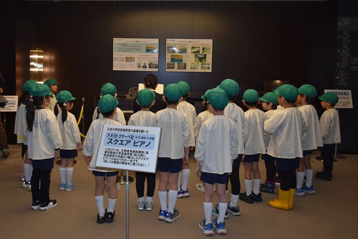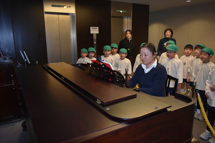 子ども図書館で遊んだ後は・・・147年前に作られたピアノを見せてもらい、みんなで『カレンダーマーチ』を元気いっぱいに歌いました🎵