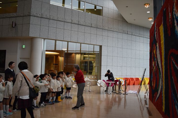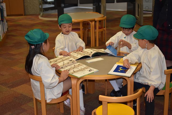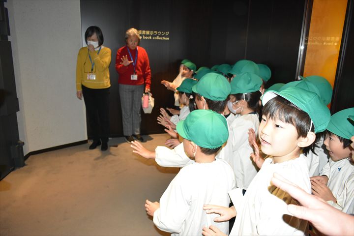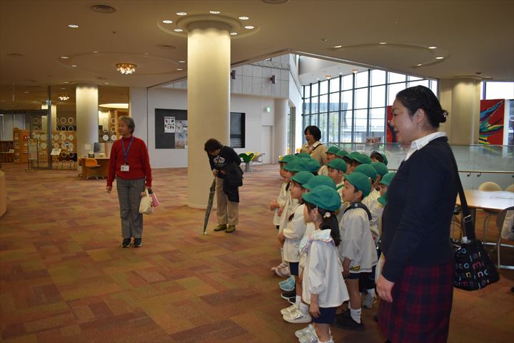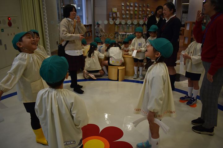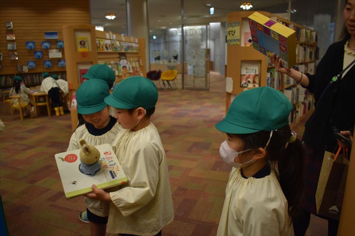 幼稚園バスに乗っている時間が長くても、松組のお友だちはみんなでお別れ遠足に行けるのが嬉しくて、「子ども図書館行くんだよね」「何が出来るかな?」・・・と、ずっと話をしていました☆