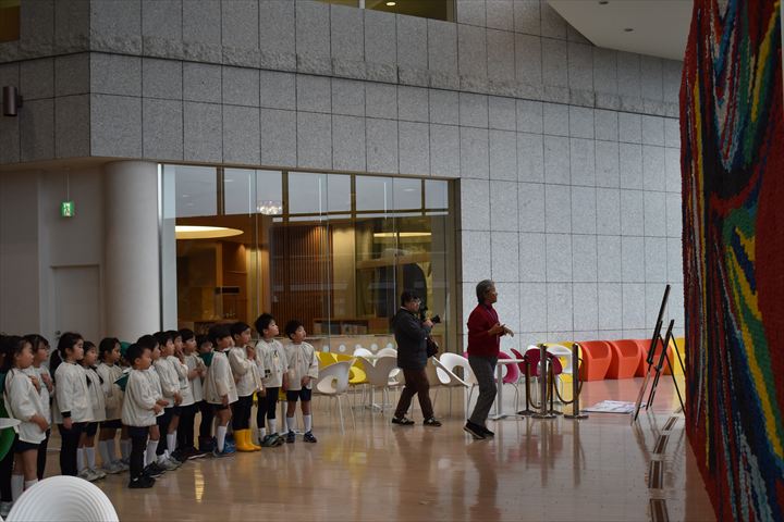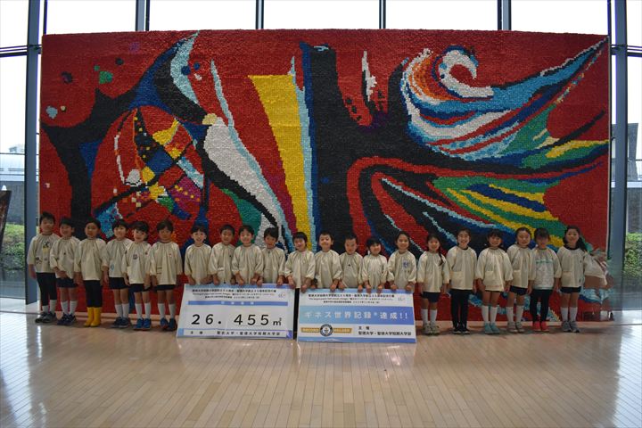赤いさくら紙を丸めてみんなで貼り合わせたものが、大きな一枚の絵に変身していましたね!!