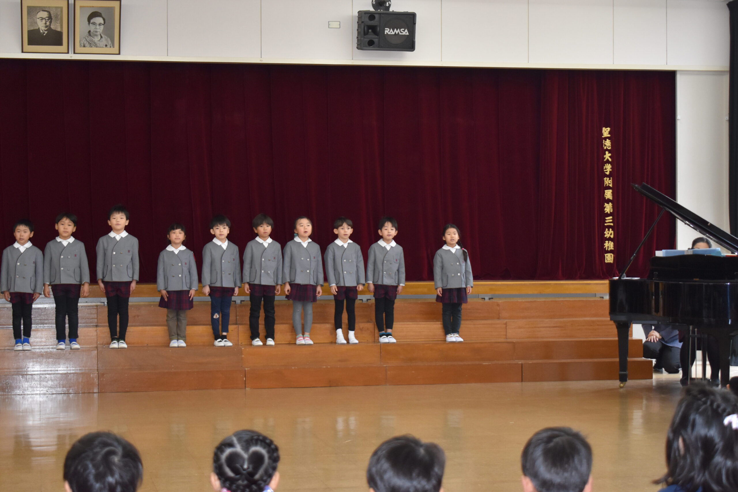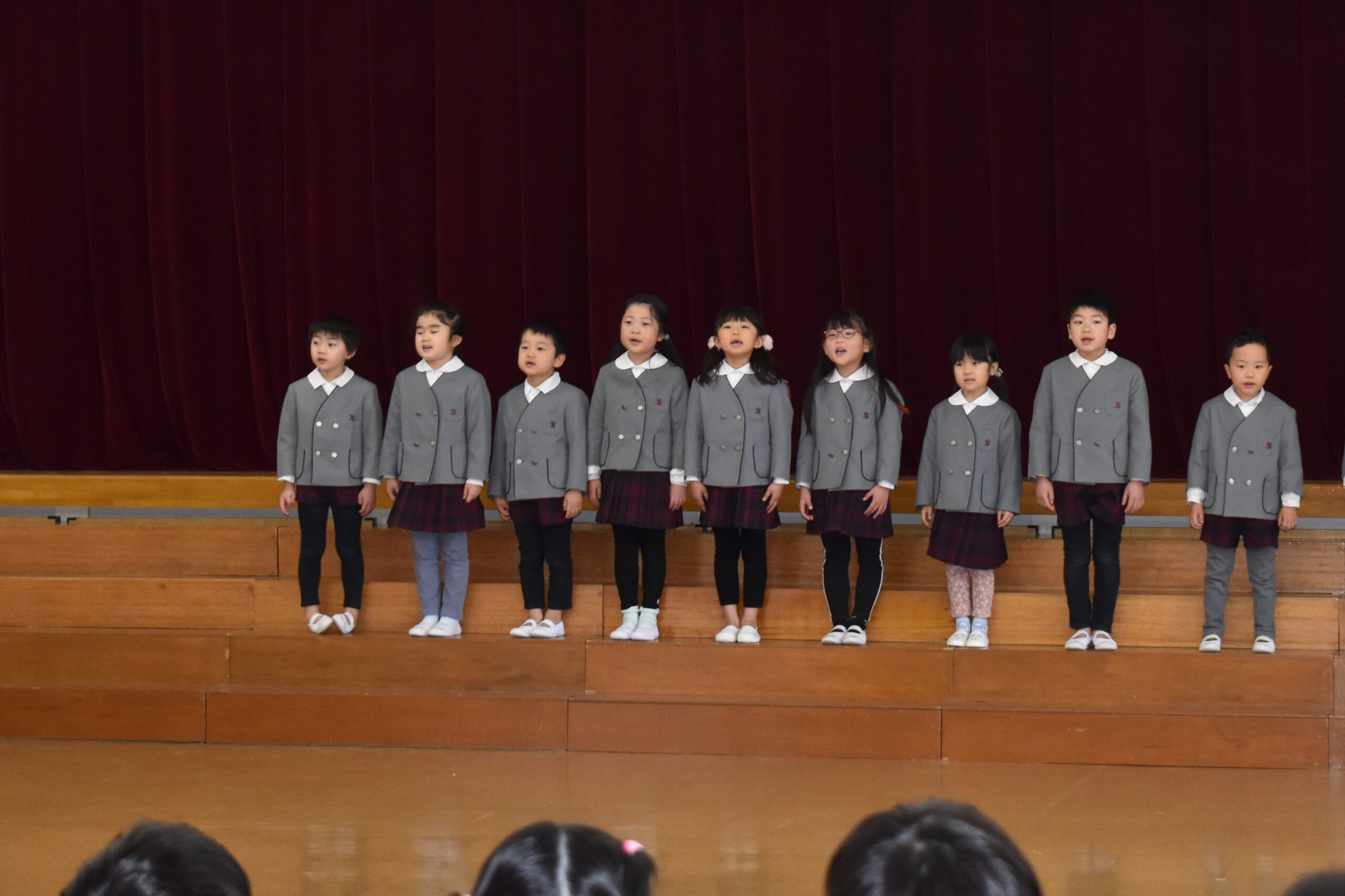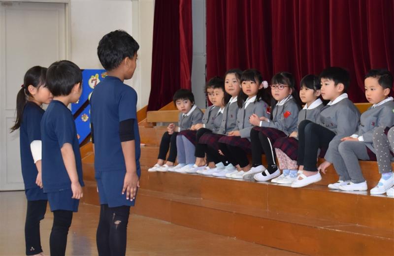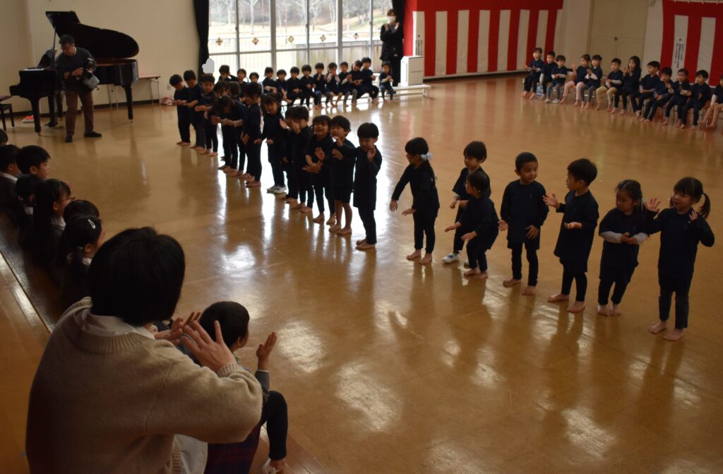歌や踊り、時間割ホルダーやクリアファイルのプレゼントをしましたよ🌟その他に、園長先生のお話を聞いたり、幼稚園のお友だち全員で歌も歌いました🎵