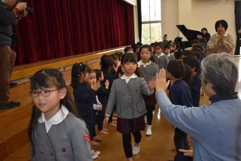 松組のお兄さん・お姉さんは、幼稚園の小さなお友だちに話したり、タッチして退場してくれました💕みんな、とっても嬉しそうでしたね😊