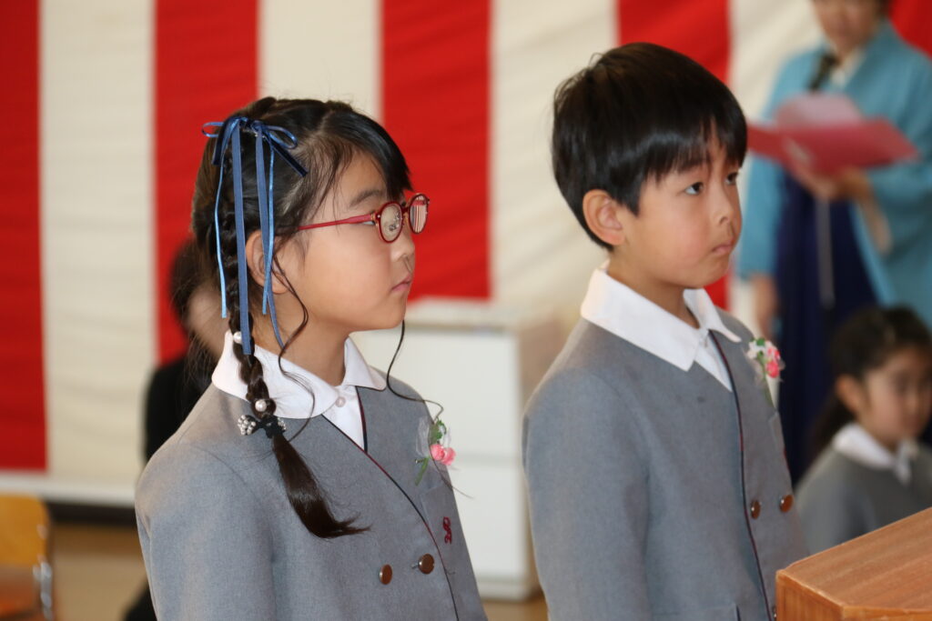 式が始まる前は和やかな表情で友だちと話していましたが、式が始まると真剣な表情になり、静かな気持ちで話を聞くことが出来ましたよ。
