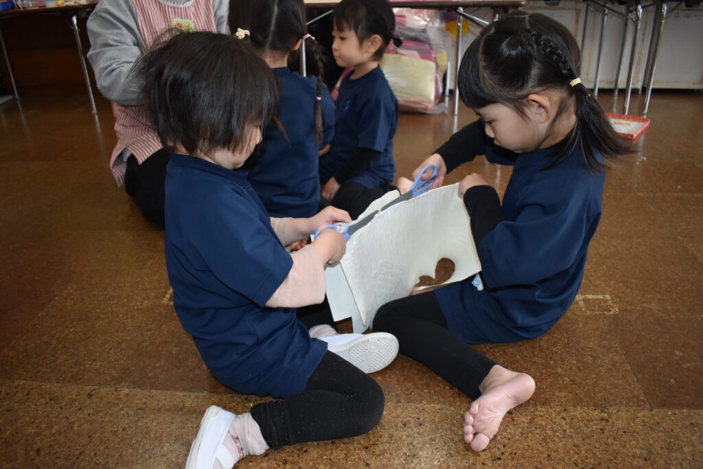 発表会後、「大きなうさぎさんを作ろう!」という声が聞かれたので、今度は平面でなく立体のうさぎを作り始めました🌈