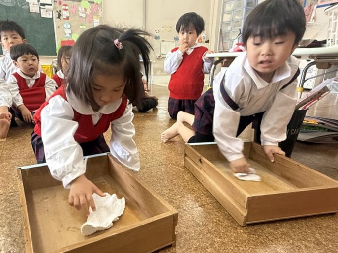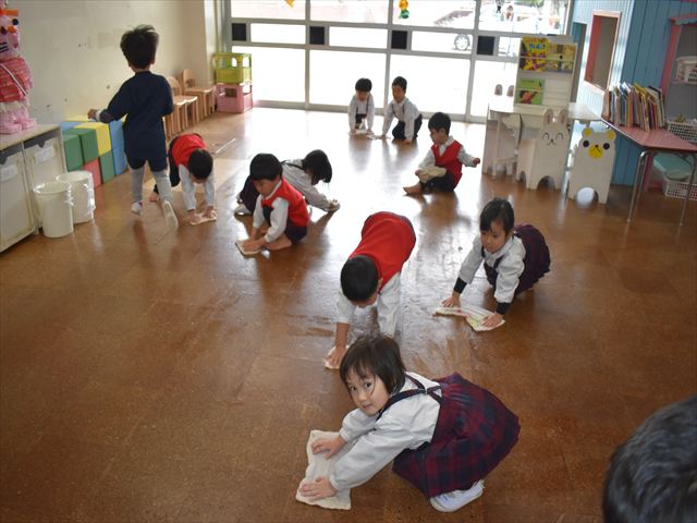 みんなで、お世話になった保育室・道具箱・靴箱をお掃除しました🌈