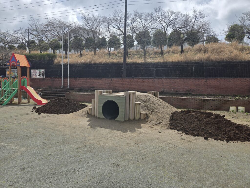 子ども達の大好きな『築山』がリニューアル💕新しい『土』が入りました😊