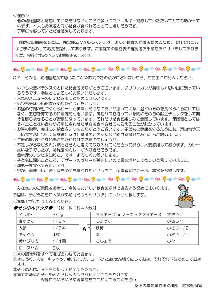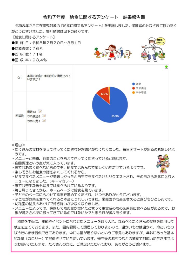 令和7年度 給食のアンケート結果
