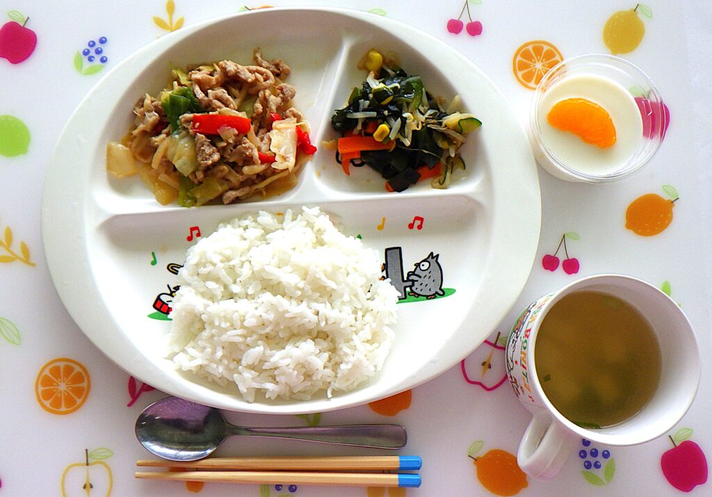 4/16🍊ご飯・豆腐の中華スープ・青椒肉絲・中華風わかめサラダ・みかん寒天🍊