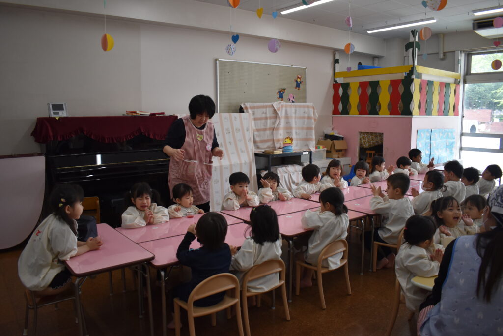 新入園児のお友だちは、給食の準備などがわかりません。