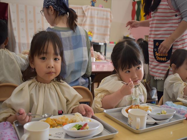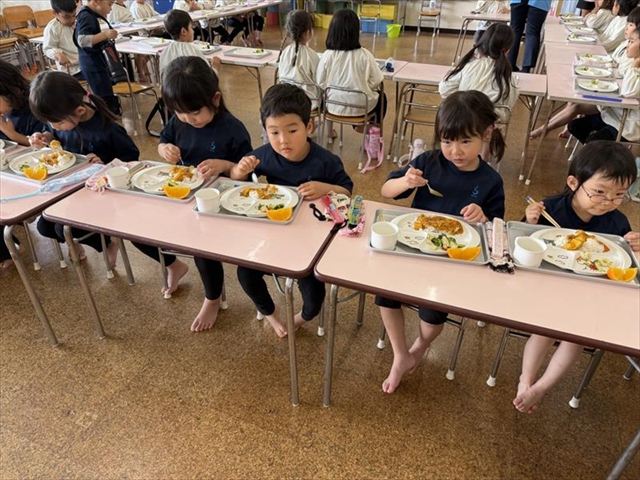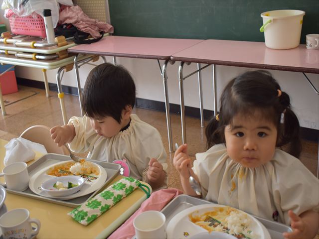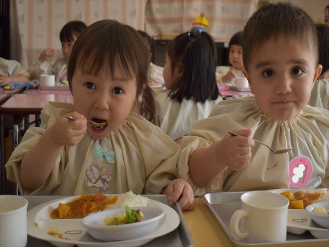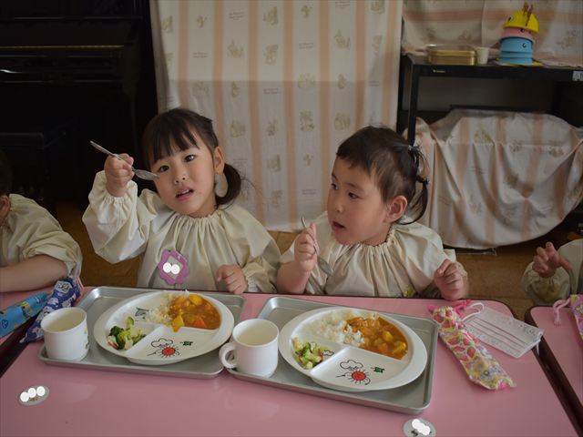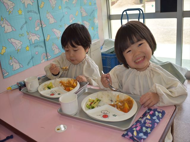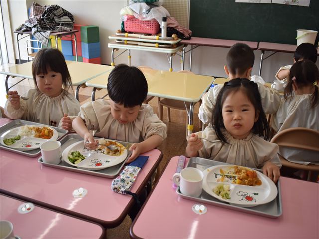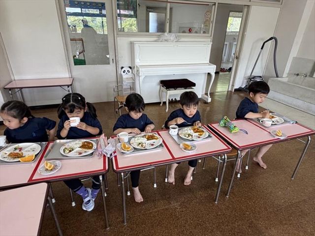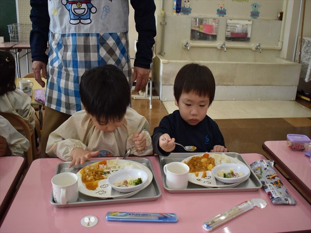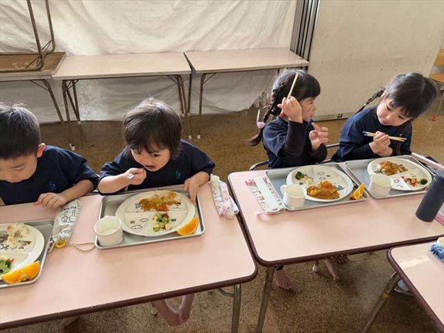 新入園児のお友だちも自分で箸やスプーンを使って食べることができましたよ🌈たくさん食べて、大きくな~あれ🌟