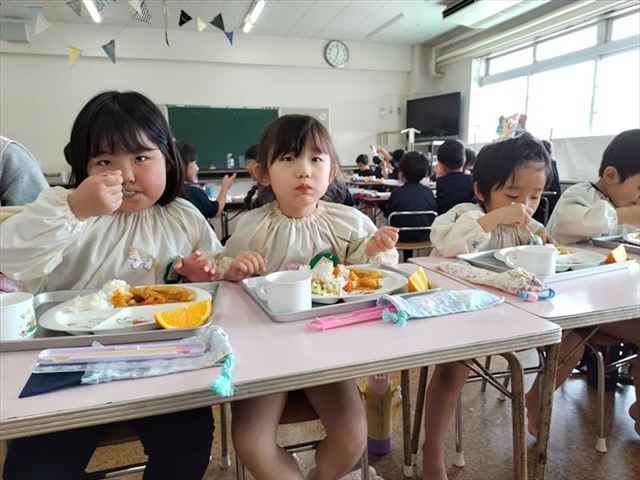 令和8年度の給食が始まりました💕今日は、子ども達に人気のカレーでした🍛