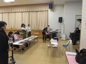 今日は、子ども達の合奏をどのように演奏したらよいかなどを先生方全員で、浦安幼稚園の先生方と一緒に山本真理子先生に教えていただきました。