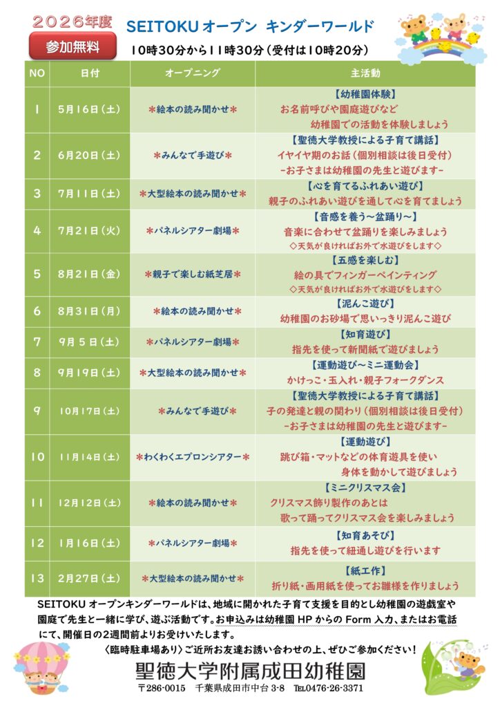 SEITOKUオープンキンダーワールド年間予定