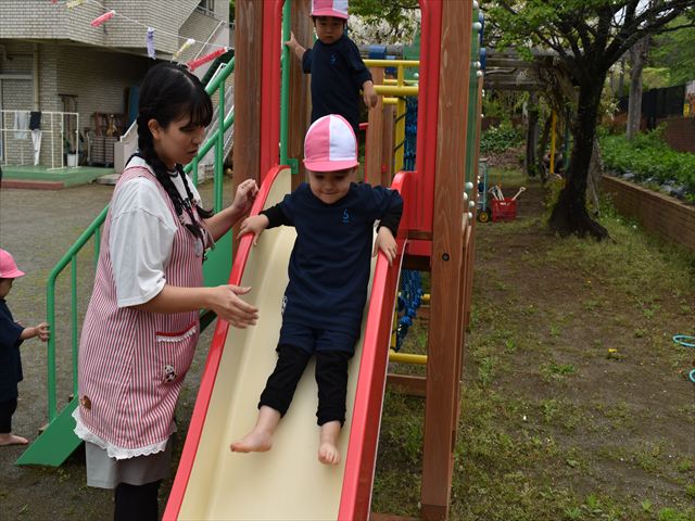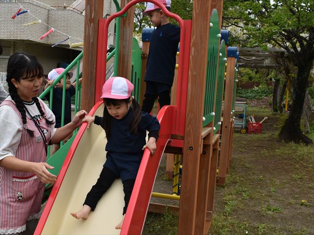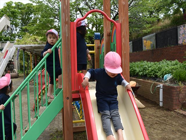 かけっこをしたり、砂場や遊具、すべり台で遊んでいますよ💗