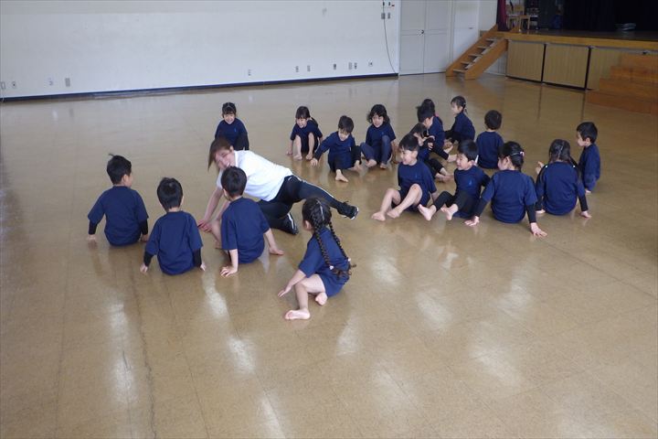 その後は、おしりで移動して『おしり鬼ごっこ』をしました。梅組のお友だちは、先生に捕まらないように逃げていましたよ💦