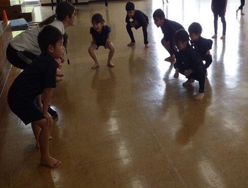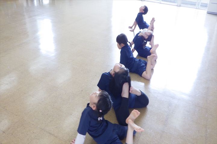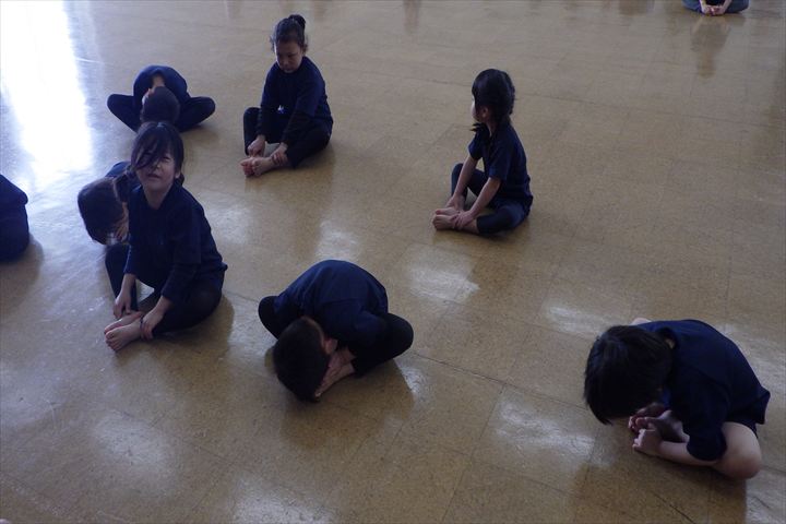 そして準備運動をしました。足の裏をつけて小さくなったり、足を開いて身体を曲げたり、アザラシのポーズやエビのポーズをしました🦐