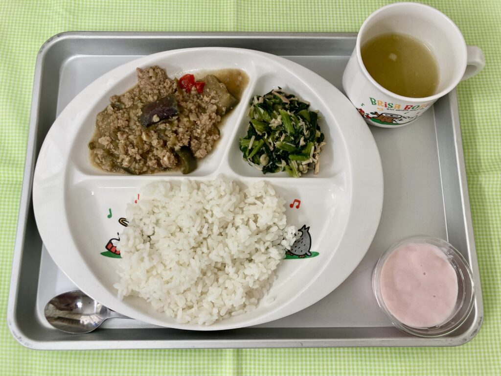 ごはん・チンゲンサイの中華スープ・揚げ鶏の甘酢ねぎソース・キャベツの中華風和え物・フルーツミルク寒天