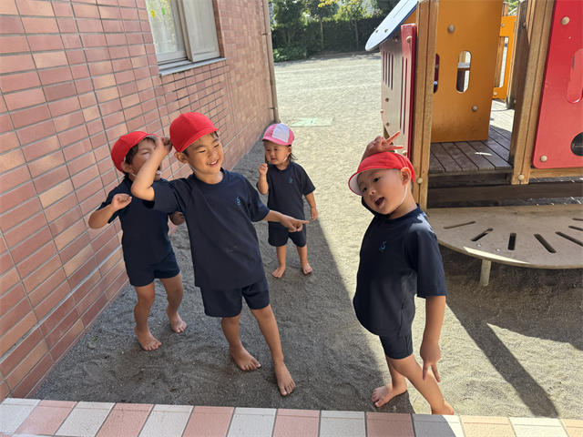 まだまだ暑い日も多い為、熱中症対策として戸外・室内での時間をそれぞれ設けて活動しています。