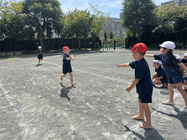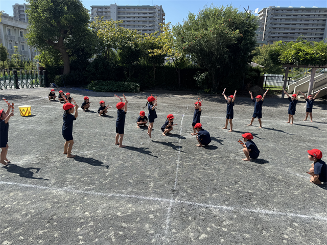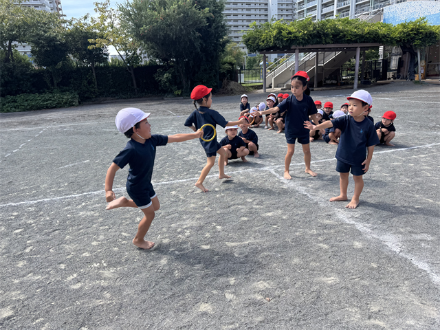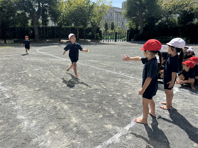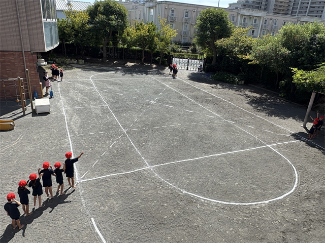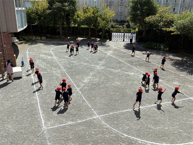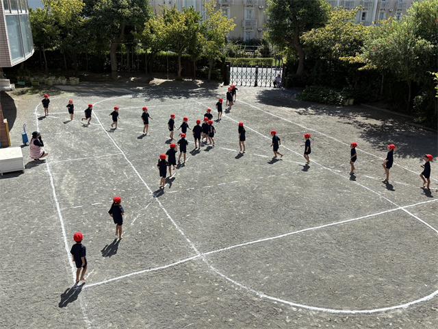 今まで遊戯室で行っていた遊戯を、今週から園庭で行ってみると・・・