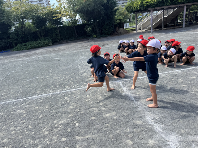日々の活動の中ではクラス全員で行っていますが、大運動会当日、梅組は『選抜リレー』を行う予定です!楽しみにしていてくださいね☀