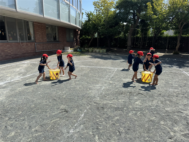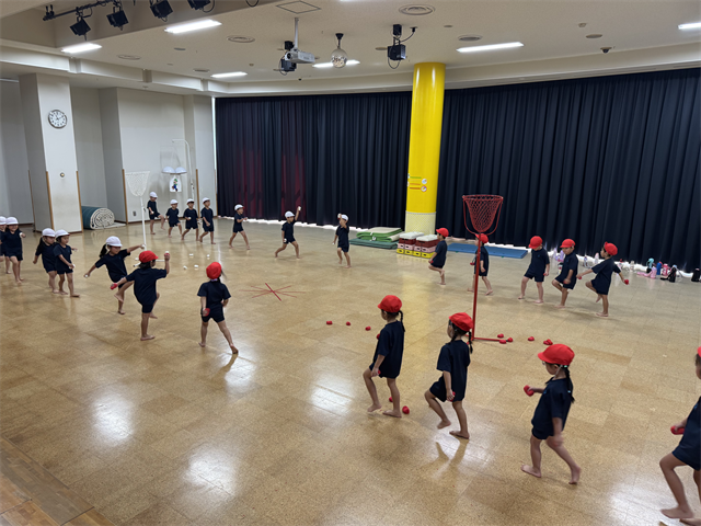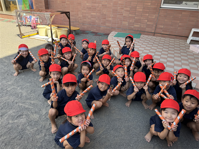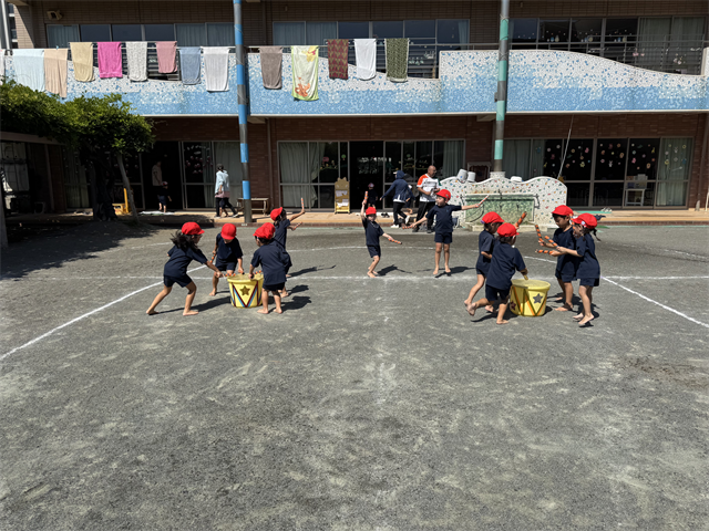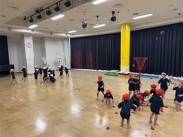 毎回大盛り上がりの玉入れ競争。今日はどちらのチームが勝ったのでしょう?お子さまに聞いてみてくださいね💕
