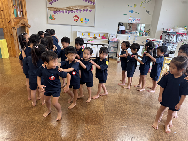 保育室で椅子取りゲームをしたり、はじめて『じゃんけん列車』をしてクラスみんなで楽しく過ごしました🚋💗