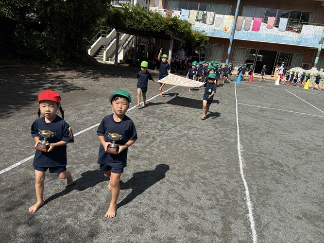 幼稚園では、このように学年やクラスの友だちと一緒に過ごす中である約束やルールを守り、身に付けられるよう「自律」と、自分たちで自己決定をし「やってみたい!」と思えるような「自主性」を育めるよう指導をしています。