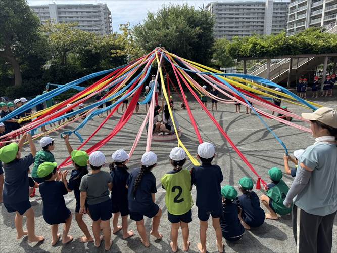 マスゲームは絶対に一人ではできません。学年のお友だちみんなで協力し作り上げていきます。