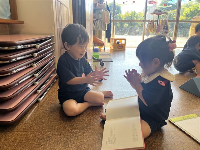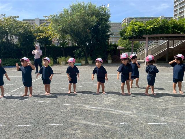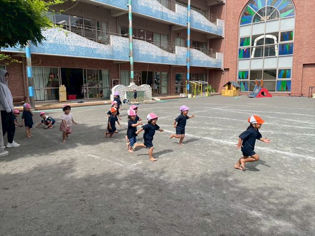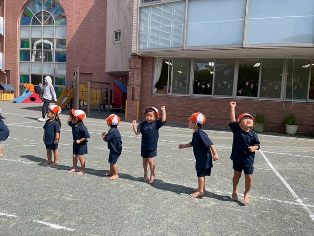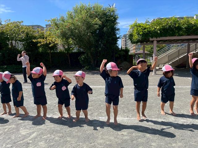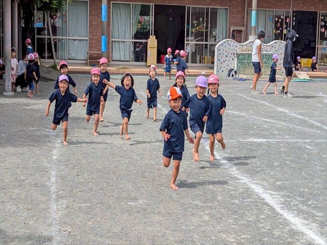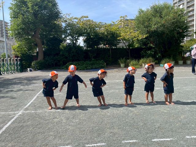 他学年の活動を見て真似たり、自由遊びの中でも「せんせい、ピッってして!」とかけっこをやりたがる等、運動遊びに対する意識も変化してきています。