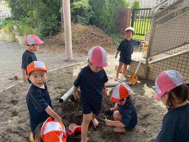 朝夕が涼しくなり、日中も過ごしやすくなってきましたので今後も園庭での遊びをたくさんしていきたいと思います。