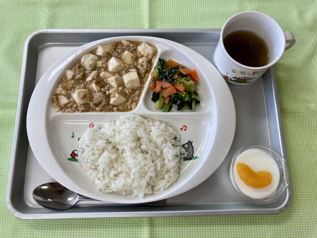 ごはん・もずくの中華スープ・麻婆豆腐・チンゲンサイの中華和え・杏仁豆腐