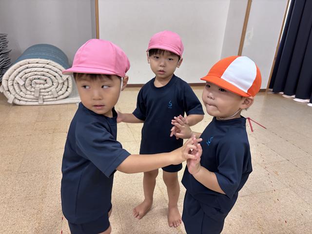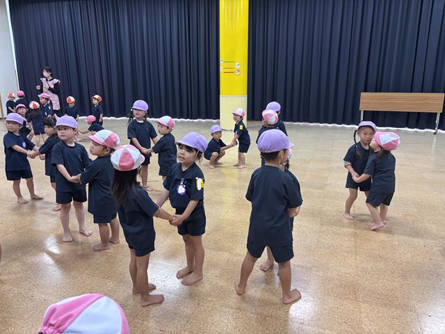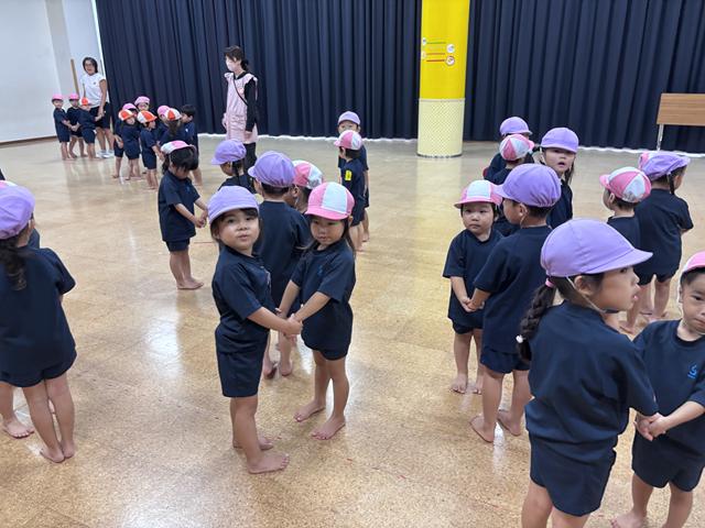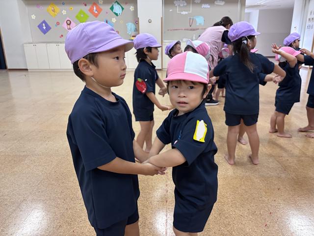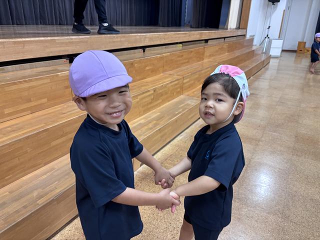 フォークダンス後、「パンダ組さん、かわいかったね♡」「また一緒に踊ろうね♡ バイバイ」と名残惜しそうにしていた桜組でした。
